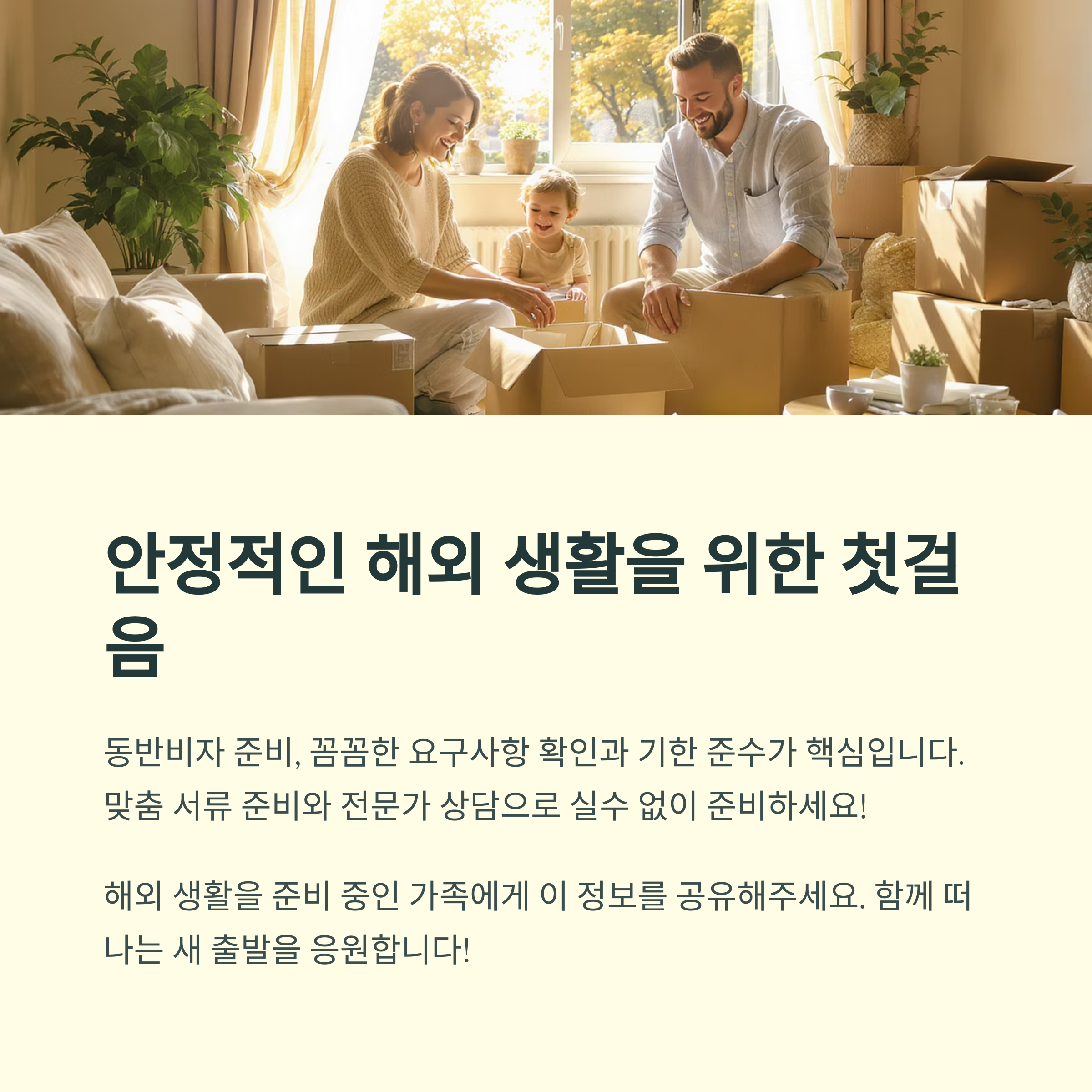 동반비자 신청은 생각보다 많은 준비가 필요한 과정입니다. 특히 국가마다 요구하는 조건이 다르기 때문에, 정보를 충분히 수집하고 대비하는 것이 매우 중요합니다. 오늘 안내해 드린 체크리스트를 바탕으로 사전에 꼼꼼히 준비한다면 거절 없이 가족 모두 함께 새로운 환경에서 안정적으로 생활을 시작할 수 있을 것입니다. 실제로 많은 분들이 이 과정을 통해 성공적인 해외 정착을 이루었고, 여러분 역시 조금만 신경 쓴다면 분명 좋은 결과를 얻을 수 있습니다. 마지막까지 읽어주셔서 감사합니다.