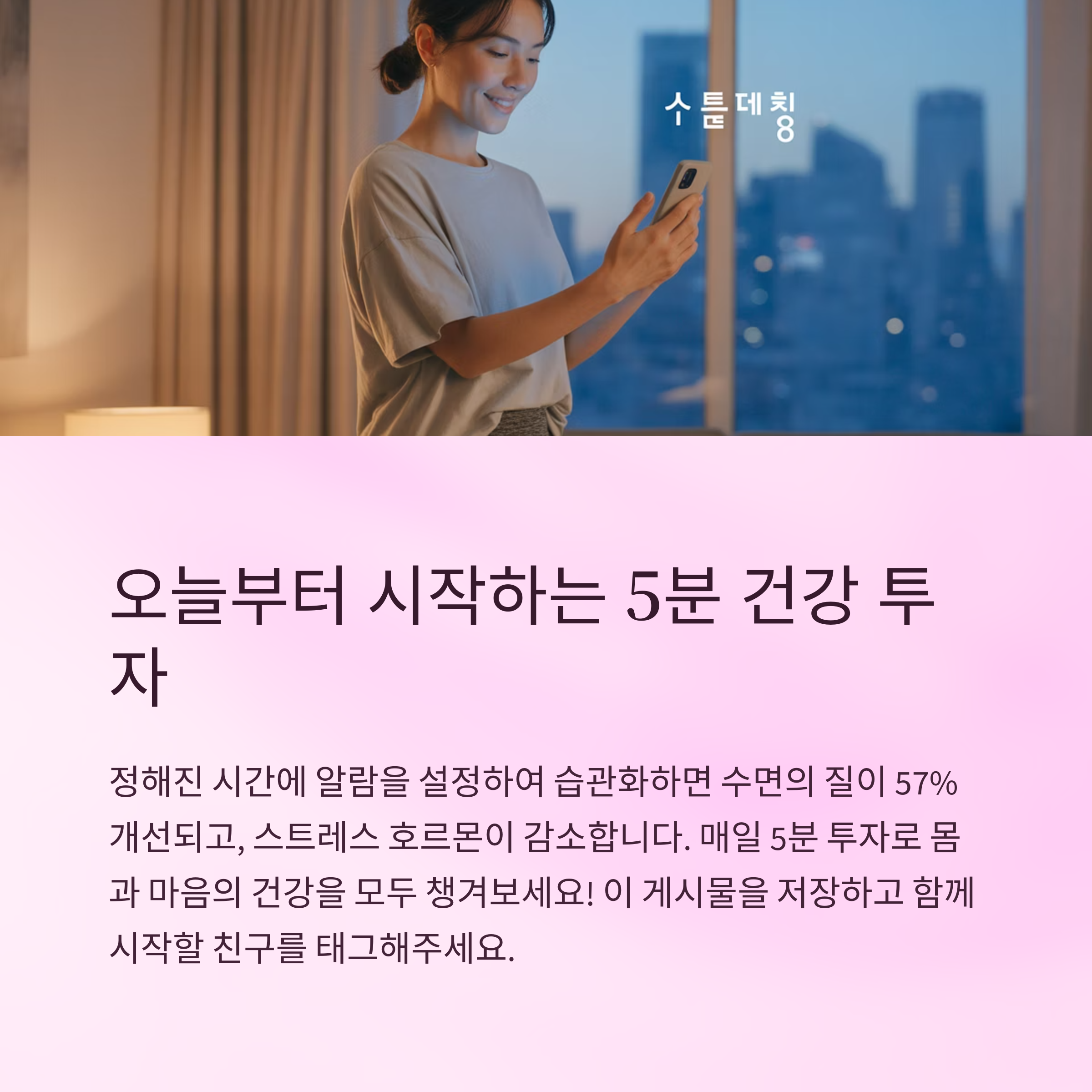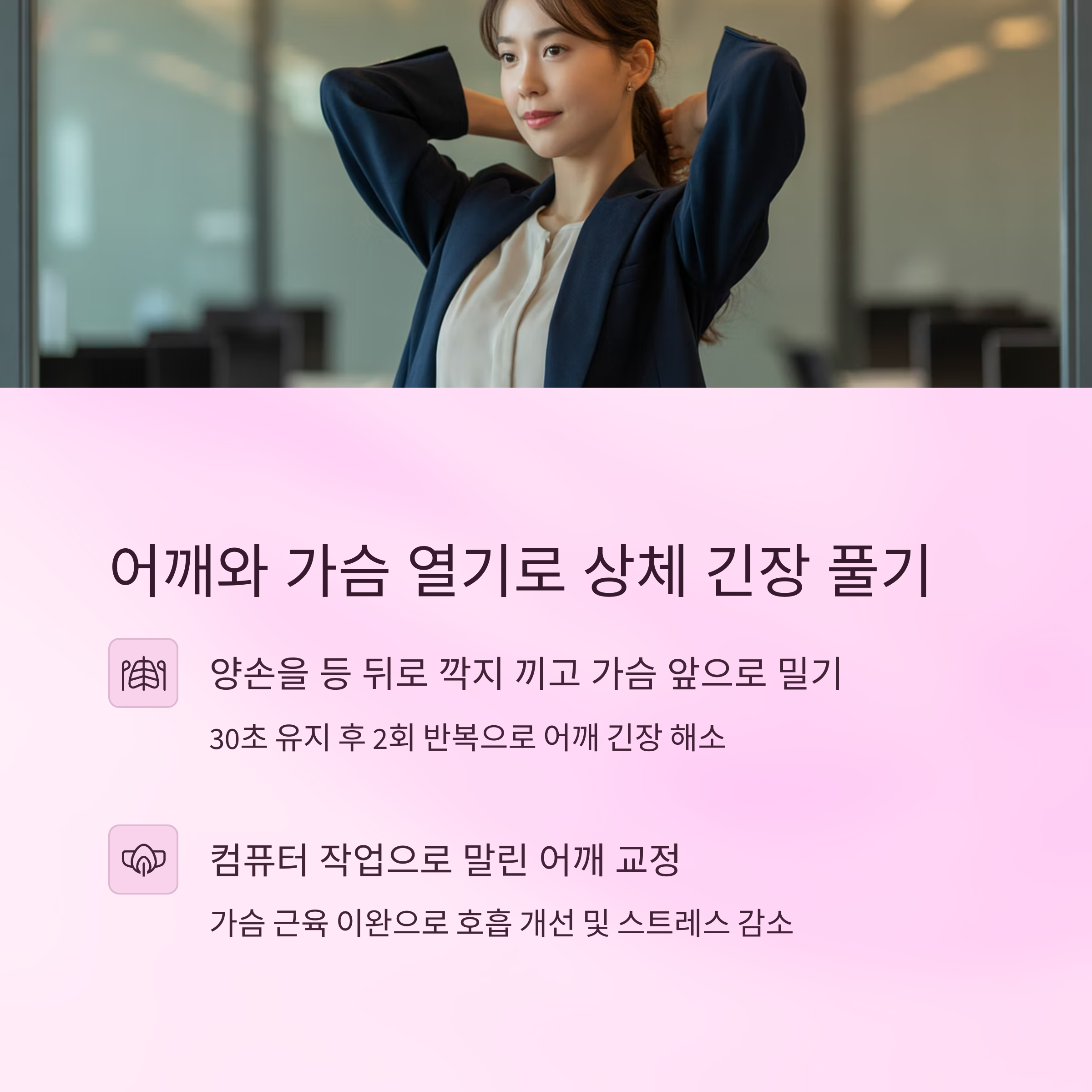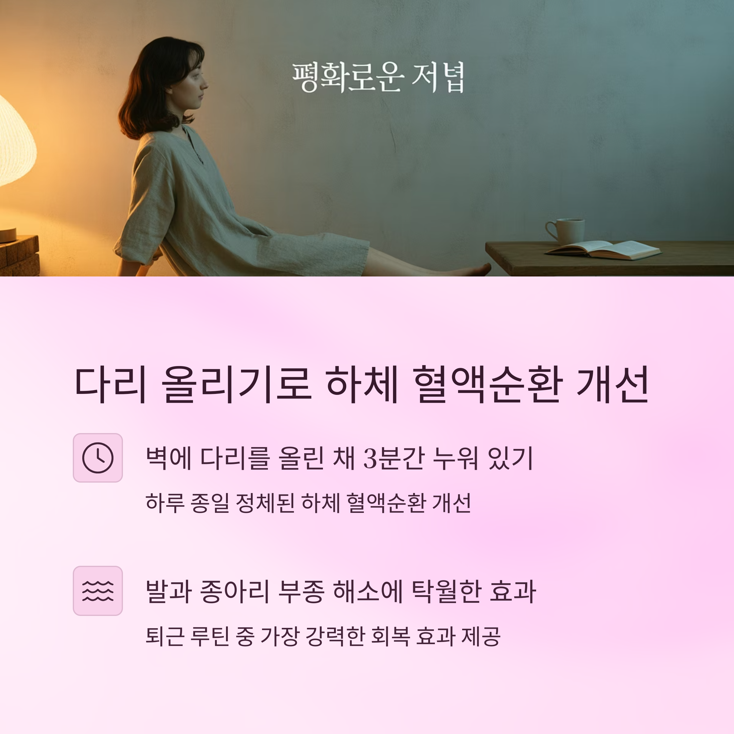 | 스트레스 해소 및 수면 질 향상 | 퇴근 직후 또는 취침 전 5분 활용 | 매일 짧게 반복하며 루틴화 유도 |